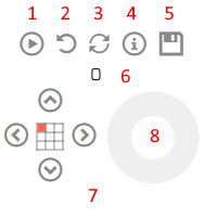 (6) is the generation counter, (7) are the alignment controls. These controls allow you to move the screen up, down and sideways as well as position whatever is on the screen according to the small 9-position grid in the center. (8) is the percentage of screen use. 100% means that all visible space is or has been occupied by a living cell.